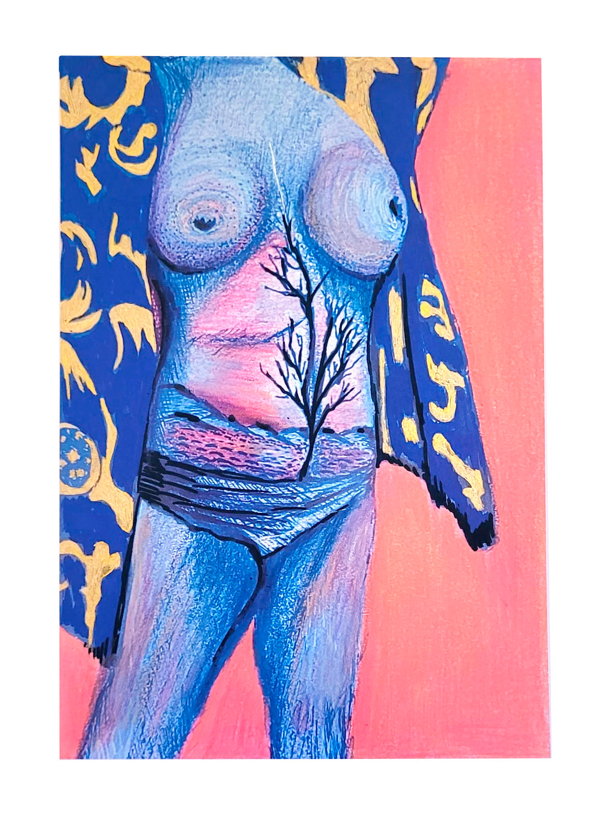 Technique : Posca, crayons de couleurs , impression